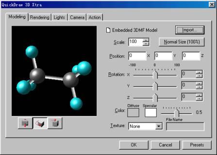 quickdraw 3d xtras可以在authorware中插入quickdraw 3d文件,3dm文件可以由3d軟件輸出(chem3d可以直接輸出分子模型)。