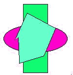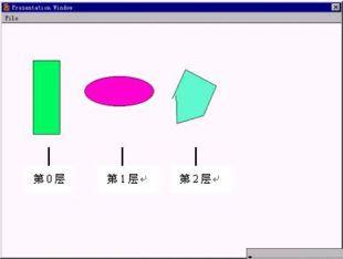 這樣在運動的過程中,方塊的運動速度最快,多邊形的運動速度最慢,橢圓將趕上多邊形,由于橢圓所處的層次級別低于多邊形所處的層次級別,則多邊形顯示在橢圓的上方,覆蓋了橢圓的部分圖形,當方塊趕上橢圓和多邊形后,由于方塊比它們兩個的層次級別都低,所以方塊處于最底層,被橢圓和多邊形所覆蓋。程序運行中的重疊效果。