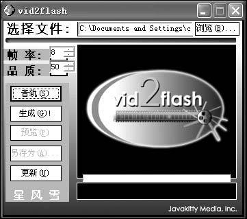 選用vid2flash 1.4或flix,這兩種軟件都可以將avi文件轉(zhuǎn)換為flash文件。vid2flash 1.4界面如圖2。選擇好幀率和品質(zhì)后點選[瀏覽]按鈕,選擇要轉(zhuǎn)換的文件后點[生成]即可。此時flash文件已經(jīng)生成,你會發(fā)現(xiàn)它的“身材”小了好幾倍。