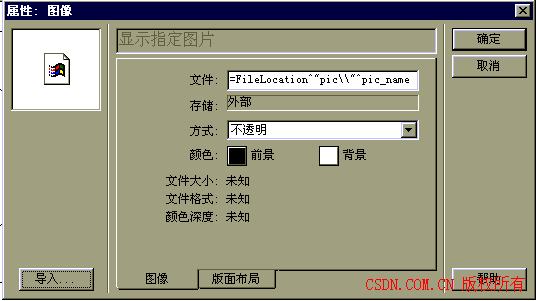 2.打開“顯示指定圖片”顯示圖標,執(zhí)行“文件→導入...”,.隨意導入一幅圖片,并選中“l(fā)ink to file”復選框。.然后雙擊剛才輸入的圖片,將打開圖象屬性對話框(圖三),在“文件”輸入框中將文件名改為: