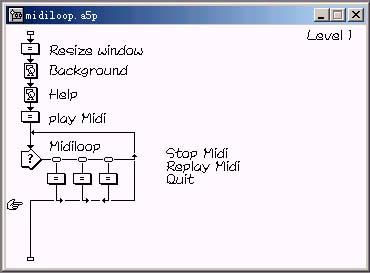 這個(gè)函數(shù)的功能是對程序指定的midi音樂進(jìn)行循環(huán)播放,直到用戶中止為止。其中參數(shù)file就是用戶自行指定的外部midi文件,當(dāng)然,這里指定的midi聲音文件并沒有導(dǎo)入程序內(nèi)部,只是存在一種相當(dāng)于鏈接的關(guān)系。