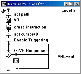 quicktime vr(qtvr)文件制作完成后,只有將它在應用程序中播放,并根據相應的交互信息靈活地使用qtvr的各種屬性和方法,才能充分發揮它的技術優勢,真正實現整個系統的功能設計。authorware提供的功能可完善地實現對qtvr文件的靈活運用,因此用authorware開發運用qtvr文件的應用程序是一個很好的選擇。