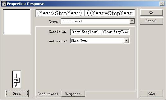 可能你會不明白為什么2003年和12月要這樣表示?其實這樣做的目的是為了增加數據表示的復雜程度,更好的加密限制時間字段。設置好默認的時間期限后,接下來就是關鍵的時間變量比較判斷分支了。繼續在流程上添加一個交互圖標,取名為“時間檢查”,在它右邊加入一個群組圖標,設置為“conditional”條件交互,返回類型設置為“exit”退出交互,響應條件設置為: