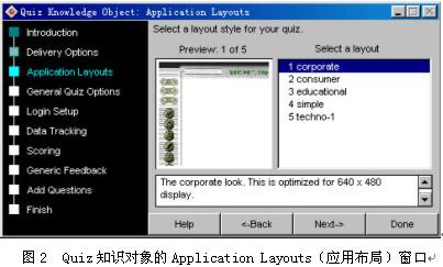 2. 拖入一個quiz知識對象到流程線上,出現quiz向導。與其他知識對象一樣,首先出現的是“introduction”(介紹)窗口,點擊“next”(下一步) 按鈕進入如圖1所示的對話窗口。