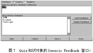 9. 在接下來的“generic feedback”(一般反饋)設置窗口中,可以修改或添加程序中所需要的正誤反饋信息。 “positive”是答題正確時的反饋信息,“negative”是答題不正確時的反饋信息,比如可以把“right”改成“正確”,如圖7。