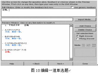 (4)單擊“next”并在接著出現的窗口中點擊“done”(完成),返回圖8所示的畫面。類似地,你可以進一步添加其他題目。