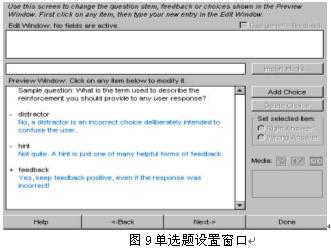 (2)點擊“run wizard...”按鈕,運行添加題目向導,出現如圖9所示的單選題設置窗口。