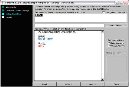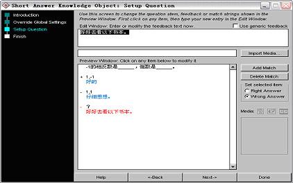 (4)單擊“next” 并在接著出現的窗口中點擊“done”(完成),返回圖13所示的畫面。可以繼續添加題目或選擇其他的題型。