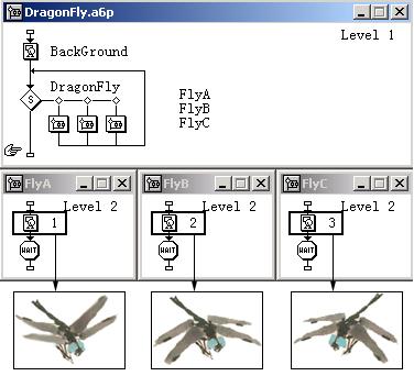 簡簡單單的幾個圖標(biāo)就讓蜻蜓展開雙翅飛起來了,是否覺得authorware的圖標(biāo)化流程設(shè)計十分的"平易近人"?!源文件下載