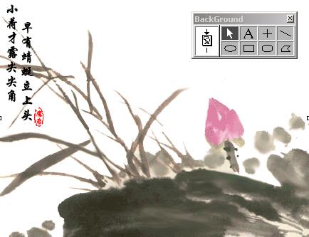 首先我們根據(jù)"小荷才露尖尖角,早有蜻蜓立上頭"的詩情畫意,利用圖象處理軟件例如adobe photoshop 7.0等設(shè)計一程序背景圖片。