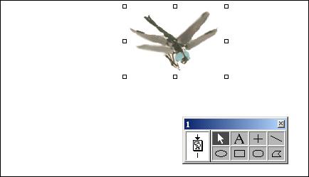 動畫的主角蜻蜓馬上出場了!在決策圖標(biāo)"dragonfly"右邊添加一群組圖標(biāo)"flya",它將成為存放蜻蜓飛行動畫第一幀圖片內(nèi)容的場所。雙擊進(jìn)入群組圖標(biāo)"flya"的二級流程窗口,在其二級流程線上添加一顯示圖標(biāo)"1",并導(dǎo)入事先準(zhǔn)備好的第一幀的蜻蜓飛行圖片,并調(diào)整"蜻蜓"到合適位置,如圖5所示。為了讓每一幀的動畫有過渡停頓的效果,繼續(xù)在顯示圖標(biāo)"1"的后面放置一等待圖標(biāo),并設(shè)置等待時間為0.4秒。這樣第一幀的動畫內(nèi)容即設(shè)計完畢!