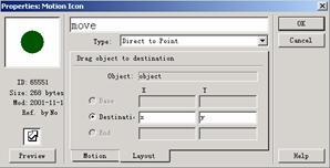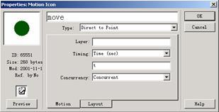(17) 雙擊打開move圖標的properties:motion icon對話框。