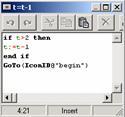 在sorry的下方添加一個goto計算圖標,在編輯窗口內輸入goto(iconid@"bj"),表示當輸入失敗時,將重新返回到bj圖標開始重新輸入字母的測試。為了給課件提供退出的時機,可將原來的quit圖標移動到try圖標的右側,并將它的交互響應類型設置為button,這樣單擊quit按鈕時,就可以關閉課件的演示窗口。