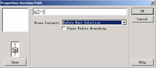 erase contents下拉列表框用于設(shè)置擦除的時機(jī),選擇before next selection時,只將執(zhí)行決策圖標(biāo)時,才擦除當(dāng)前分支的內(nèi)容。選擇upon exit時,表示在退出決策結(jié)構(gòu)時,才擦除當(dāng)前分支的內(nèi)容。選擇don't erase時,將始終保持當(dāng)前屏幕上的分支內(nèi)容,除非使用一個擦除圖標(biāo)將它們擦除。