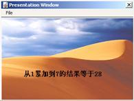 播放課件之后,每累加一次,其結果都將顯示在屏幕上(如圖11-14所示)。由于將決策分支的擦除屬性設置為don't erase,這樣即使退出決策結構,顯示的累加結果也不會被擦除。在退出決策結構之后,通過交互圖標及計算圖標,給演示窗口內添加了quit按鈕,只要單擊該按鈕時,都能關閉打開的演示窗口。