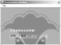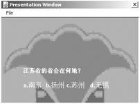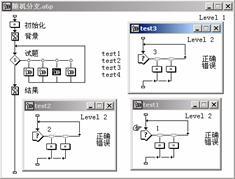 下面是制作試題課件實例。為了制作試題課件,可準備一個題庫,然后通過決策圖標,將試題隨機地顯示在屏幕上。在給出的一組(一般為4個)答案中進行選擇,無論對錯都進行下一道試題的選擇。最后,將得分顯示在演示窗口內。