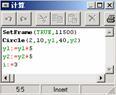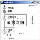 “計算”圖標內(nèi)的setfill(flag,color)用于設定畫圖函數(shù)的填充模式。flag為true時進行填充,flag為假則不填充。將圓形的中心分別確定在演示窗口的左上角及右下角,水平向右畫圓形時,將x軸的坐標依次加5,而y軸的坐標保持不變。垂直向下畫圓形時,將y軸的坐標依次加5,x軸的坐標保持不變。