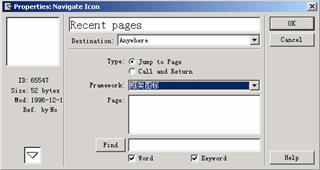因此,能夠確定結點頁所在的框架圖標時,可在page下拉列表框內選擇框架圖標的名稱,然后在下方的列表框內選擇結點頁。無法確定結點頁所在的框架圖標時,可在page下拉列表框內選擇entire file之后,然后再從下方的列表框內選擇目標結點頁。