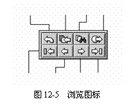 播放帶有瀏覽圖標的課件時,將在演示窗口的右上角顯示8個按鈕(如圖12-5所示),這是authorware 6.0提供的默認瀏覽按鈕。其中返回按鈕用于返回到上一步訪問的結點頁;最近訪問的頁按鈕用于顯示最近訪問的一些結點頁;選擇其中的任意一頁之后,課件將跳轉到該頁顯示。查找按鈕用于根據提供的關鍵詞查找特定的結點頁;退出按鈕用于退出框架執行范圍;到首頁按鈕用于跳轉到框架圖標管理的第一個結點頁;前一頁按鈕用于跳轉到框架圖標內當前結點頁的前一個結點頁;后一頁按鈕用于跳轉到框架圖標內當前結點頁的下一個結點頁;到末頁按鈕用于跳轉到框架管理的最后一個結點頁。