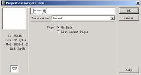 雙擊瀏覽圖標本身或者在選擇瀏覽圖標之后,使用ctrl+i組合鍵,或者選擇modify→icon→properties命令時,將打開如圖12-6所示的properties:navigate icon對話框。