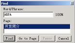 在word/phrase文本框內(nèi)輸入文本或關(guān)鍵字之后,單擊find按鈕,將在框架圖標(biāo)控制的范圍內(nèi)查找,并將查找結(jié)果顯示在page列表框內(nèi)。如果存在多個圖標(biāo)滿足查找要求,那么選擇一種圖標(biāo)之后,單擊go to page按鈕將直接打開圖標(biāo)所在的演示窗口,或者雙擊圖標(biāo)也可以達(dá)到同樣的目的,此時演示窗口內(nèi)的查找內(nèi)容將高亮顯示。