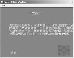 (27) 單擊go to page按鈕時,演示窗口內(nèi)將直接跳轉(zhuǎn)到“開發(fā)簡介”圖標(biāo)。