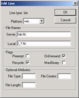 執(zhí)行g(shù)et命令時,將打開如圖14-7所示的edit line對話框之(2),url文本框用于設(shè)置映射文件、動態(tài)鏈接庫和靜態(tài)鏈接庫在web服務(wù)器上的位置。
