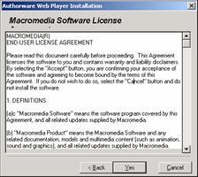 (2) 單擊next按鈕,打開如圖14-18所示的authorware web player install對話框之(2),詢問是否遵守macromedia software的信用協議。