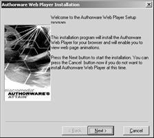 (1) 雙擊authorware _web_ player.exe,打開如圖14-17所示的authorware web player installion對話框之(1)。
