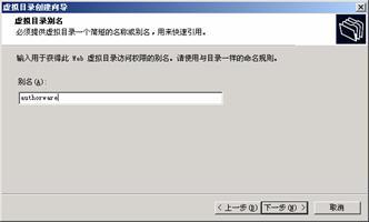 (4) 在“別名”文本框內(nèi)輸入虛擬路徑的名稱之后,單擊“下一步”按鈕,打開如圖14-25所示的“虛擬目錄創(chuàng)建向?qū)А睂υ捒蛑?3)。