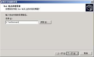 在配置服務(wù)器時,需要將一些文件上傳到服務(wù)器,經(jīng)常使用的文件是嵌入embed標記的html文件、web化打包的映射文件、數(shù)據(jù)塊文件以及運行課件所需的外部文件、xtras、ucd及dll等。為了維護和更新的方便,上述文件存放在單獨的目錄中。例如,將上述文件存放在服務(wù)器的c:/authorware目錄下,對于windows2000的用戶可按下列方式創(chuàng)建一個虛擬路徑。