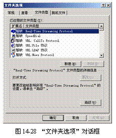 為了創(chuàng)建新的mime映射,可在資源管理器窗口內(nèi),依次選擇“查看”→“文件夾選項”,打開“文件夾類型”對話框(如圖14-28所示),在“文件類型”選項卡內(nèi),單擊“新建”按鈕,就能夠?qū)am(映射文件)、aas(數(shù)據(jù)塊文件)和aab (可能性文件)作為新的mime映射。