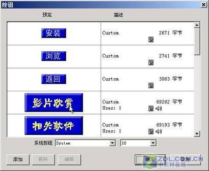 (3)雙擊這個按鈕,打開它的設置框,并從按鈕庫中選擇一個您所需要的按鈕,再從光標庫中選擇一個您所需要的光標;
