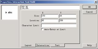 在layout選項卡內,character limit可以限制用戶在文本輸入框內輸入的最多字符個數。如果用戶輸入的字符個數大于此值,則authorware 6.0會忽略多余的字符。另外,文本框的大小也可以限制用戶能夠輸入的字符個數。如果將character limit設置為空,那么用戶能夠輸入的最多字符個數就是文本框能夠容納的字符個數。