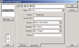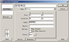 按鈕響應的屬性對話框主要包括三個部分:通用控制、button選項卡和response選項卡。在響應預覽窗口內,顯示了由按鈕響應所產生的一個按鈕。單擊下方的button按鈕時,將打開按鈕編輯對話框,允許用戶編輯現有的按鈕,刪除或創建新的按鈕。