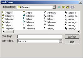 在cursors對話框內選擇所需的光標之后,單擊ok按鈕即可完成改變鼠標移動到按鈕上時所出現的光標形狀。對于authorware 6.0提供的光標庫不太滿意,也可以增加更多的光標。單擊cursors對話框的add按鈕,將打開如圖6-14所示的load cursor對話框。