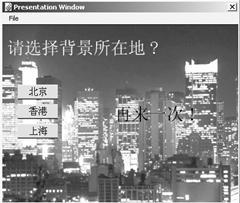 將地名作為按鈕響應的名稱,然后讓用戶選擇,根據選擇不同的結果,制作相應的結果圖標。由于將按鈕響應的屬性設置為after next entry,這樣結果圖標的內容將一直顯示在演示窗口內,直到單擊其他的按鈕響應為止。