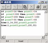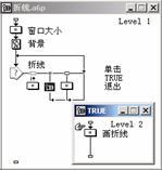 本例的折線是由橫坐標及縱坐標的頂點加上用戶單擊的位置組成的。authorware 6.0使用的坐標系是將水平向右作為x軸的正方向,假設x軸正方向的頂點位于a點,垂直向下作為y軸的正方向,假設y軸正方向的頂點位于b點,因此單擊演示窗口的任意一點c之后,將在acb之間連成一條折線。