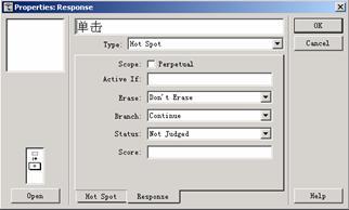 在熱區響應屬性對話框內,其中的response選項卡里有一個重要的perpetual復選框,啟用該復選框之后,將使課件始終接受用戶的響應。例如,將第一個相片的顯示時間定義為10秒時,在此期間單擊“第1頁”、“第2頁”、“第3頁”或“第4頁”時,都不會得到響應,這是由于未啟用perpetual復選框的緣故。一旦啟用perpetual復選框之后,在相片的顯示時間之內,只要單擊熱區,都會觸發相應的響應。
