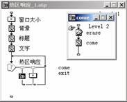 (17) 雙擊come圖標上方的熱區響應標識符,打開熱區響應的屬性對話框。