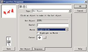 (10) 雙擊熱對象響應的標識符,通過屬性對話框和演示窗口把熱對象與顯示對象連接起來。