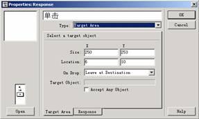 在target object文本框內顯示可移動對象的圖標名稱。啟用accept any object復選框之后,將會匹配任何對象,這就意味著當用戶把任何對象拖動到目標區域時,系統都會認為用戶的響應與目標區域的響應相匹配。