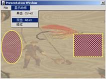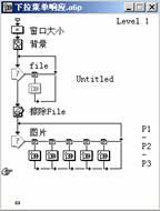本例旨在實現通過下拉菜單選擇并顯示不同的圖片。在默認的情況下,authorware 6.0總是在演示窗口內自帶一個file菜單,其中的quit用于關閉演示窗口。使用擦除圖標,可以將file菜單作為擦除對象,這樣在演示窗口的標題欄內只顯示用戶自定義的菜單。