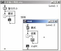 文本輸入響應(yīng)提供了用戶與課件進行交互的一種接口。對于加法訓(xùn)練來說,可事先由課件隨機地抽取1到10之間的兩個數(shù),并列成算式,要求用戶將正確的答案填寫在文本框內(nèi)。如果輸入的結(jié)果正確,那么再次進行隨機地抽取其他的數(shù)進行訓(xùn)練。如果輸入的結(jié)果錯誤,要求用戶重新輸入,直到正確為止。