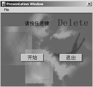 由于將“提示”及“?”圖標的內容都設置為透明,這樣無論是“請按任意鍵”,還是“你在鍵盤上輸入的鍵名是”及其內容下方的背景中都能夠顯示出來,如圖9-22所示。