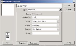 (15) 將群組圖標命名為uparrow之后,雙擊按鍵響應的標識符,打開properties:response對話框。