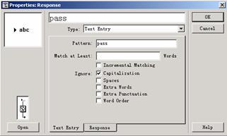 (17) 雙擊顯示圖標上方的交互標識符,打開properties:response對話框。
