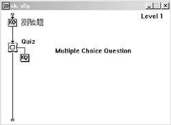 4.繼續(xù)單擊next按鈕,進入到反饋設置,此處可按程序默認;繼續(xù)單擊next按鈕,進入增加問題 項,在測驗型知識對象中有拖放、熱對象、熱點、多重選擇、簡短回答、單選等類型,這些問題可以刪除或調 整前后次序,我們這里選擇多重選擇(multiple choice)這一類型的知識對象。此時點擊finish按鈕,完成 了初步工作,測驗程序的流程圖如圖2。