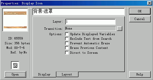 為了讓遮罩出現(xiàn)在背景的上層,按ctrl+i打開圖標(biāo)屬性對(duì)話框,將layer(層)設(shè)為1,如圖6所示。