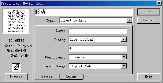 拖動(dòng)一個(gè)移動(dòng)圖標(biāo)到流程線上,命名為“移動(dòng)”,按“shift”鍵再雙擊打開“移動(dòng)”圖標(biāo),選中我們剛輸入的那一段文字,這時(shí)在對(duì)話框的左上角會(huì)出現(xiàn)我們選中的對(duì)象微縮圖,表明我們已選中了文字。從“type”(類型)中選擇“direct to line”,如圖8所示。